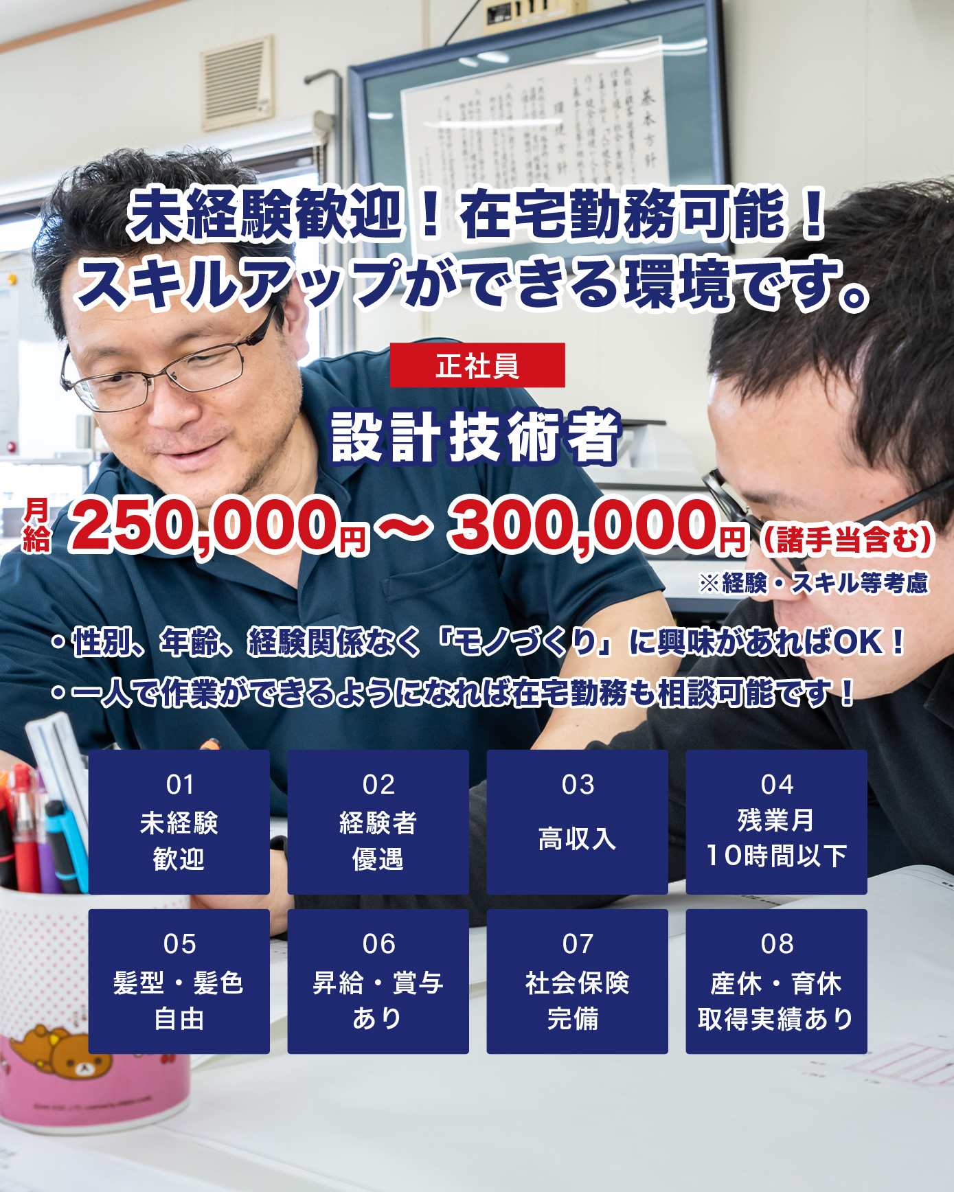 未経験OK!経験者優遇!性別、年齢、経験関係なく「モノづくり」に興味があれば